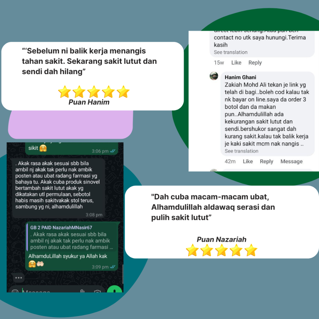 *PENAFIAN: Keberkesanan produk ini bergantung kepada kesesuaian individu. Setiap hasil dari penggunaan adalah berbeza bagi setiap individu. Produk ini akan memberi kesan terbaik sekiranya pengguna mengamalkan dengan cara betul berdasarkan banyak testimoni yang diperolehi. Kita berikhtiar, tuhan yang menyembuhkan.