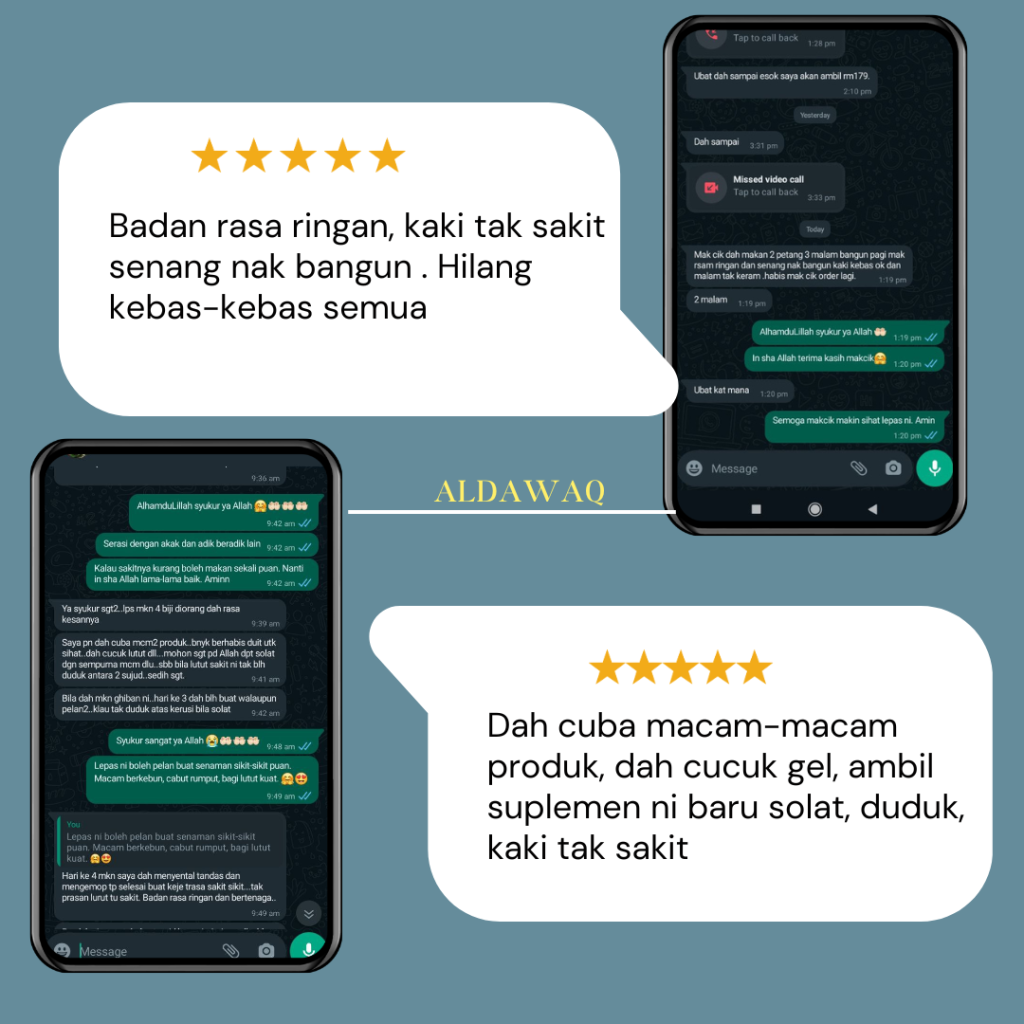 Sebab 9.9 daripada 10 customer kami berpuas hati dengan Suplemen Aldawaq